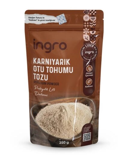 Orijinal fiyat: 665,00₺.550,00₺Şu andaki fiyat: 550,00₺.İngro Glutensiz Karnıyarık Otu Tohumu Tozu (PSYLLİUM POWDER) 250 g